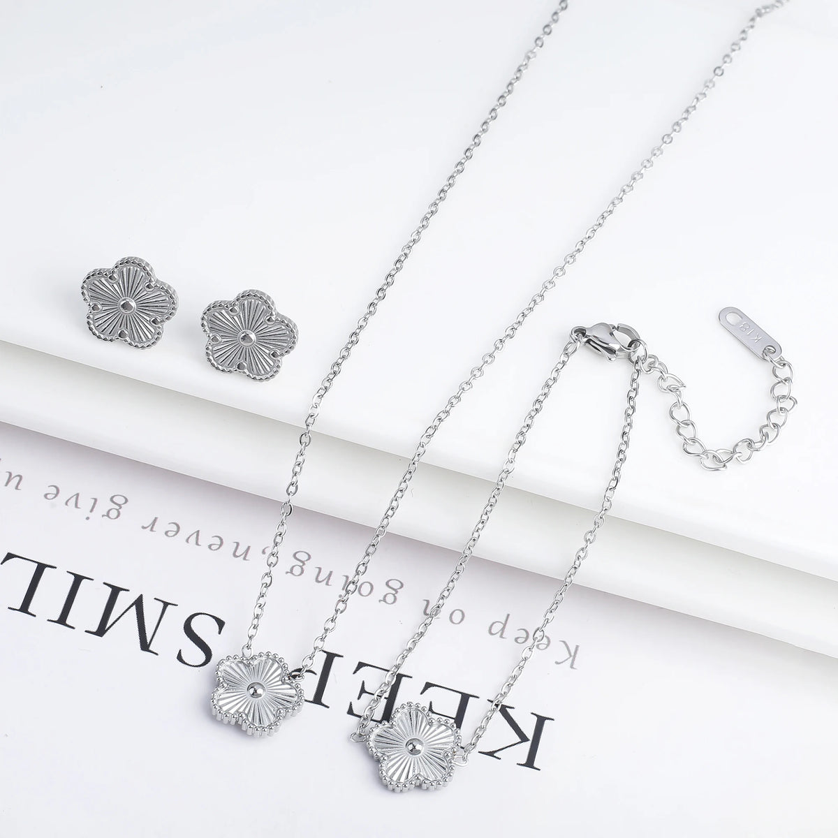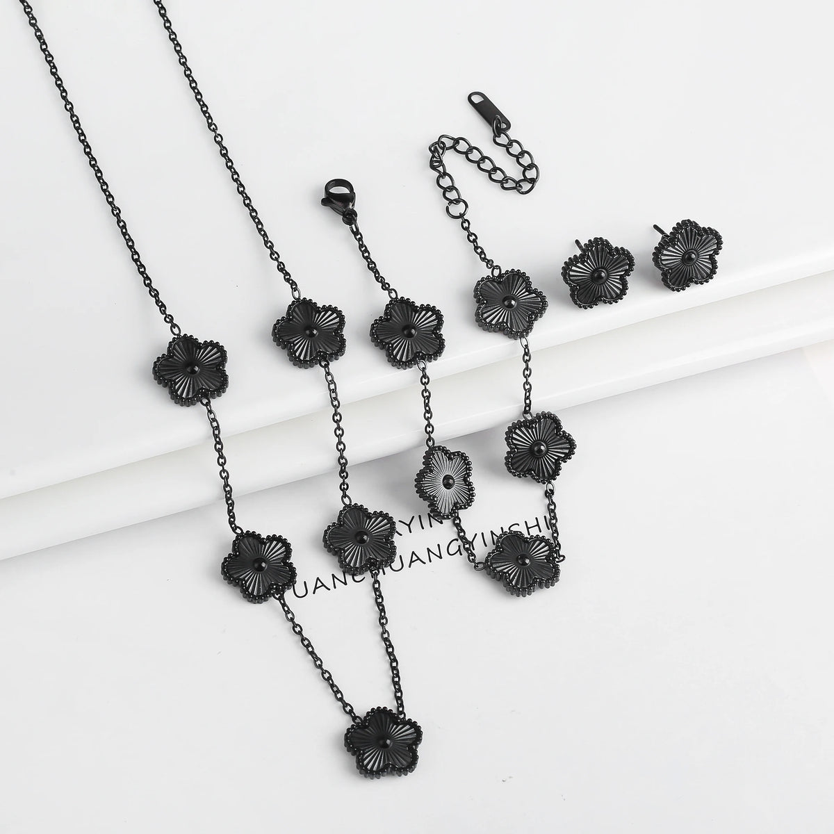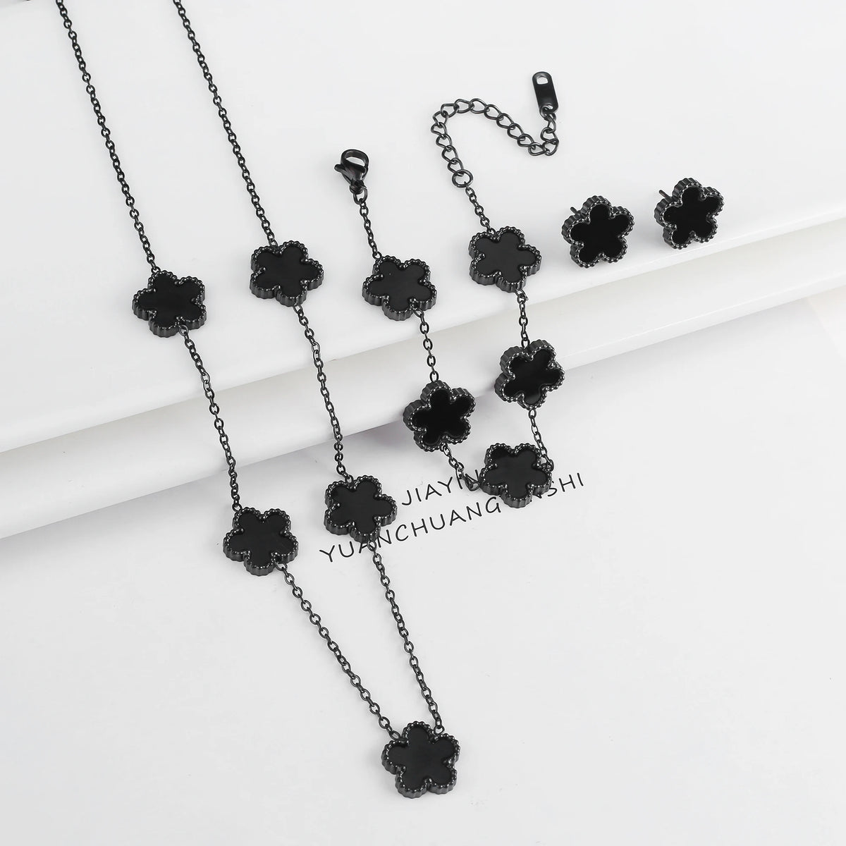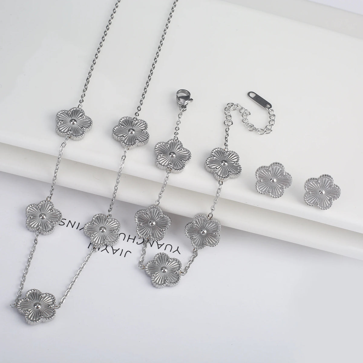 Name: 3Pcs 18k Gold-Plated Five-Leaf Flower Necklace Earrings Bracelet Jewelry Set For Woman Fashion Party Jewelry Daily Wear Clover
